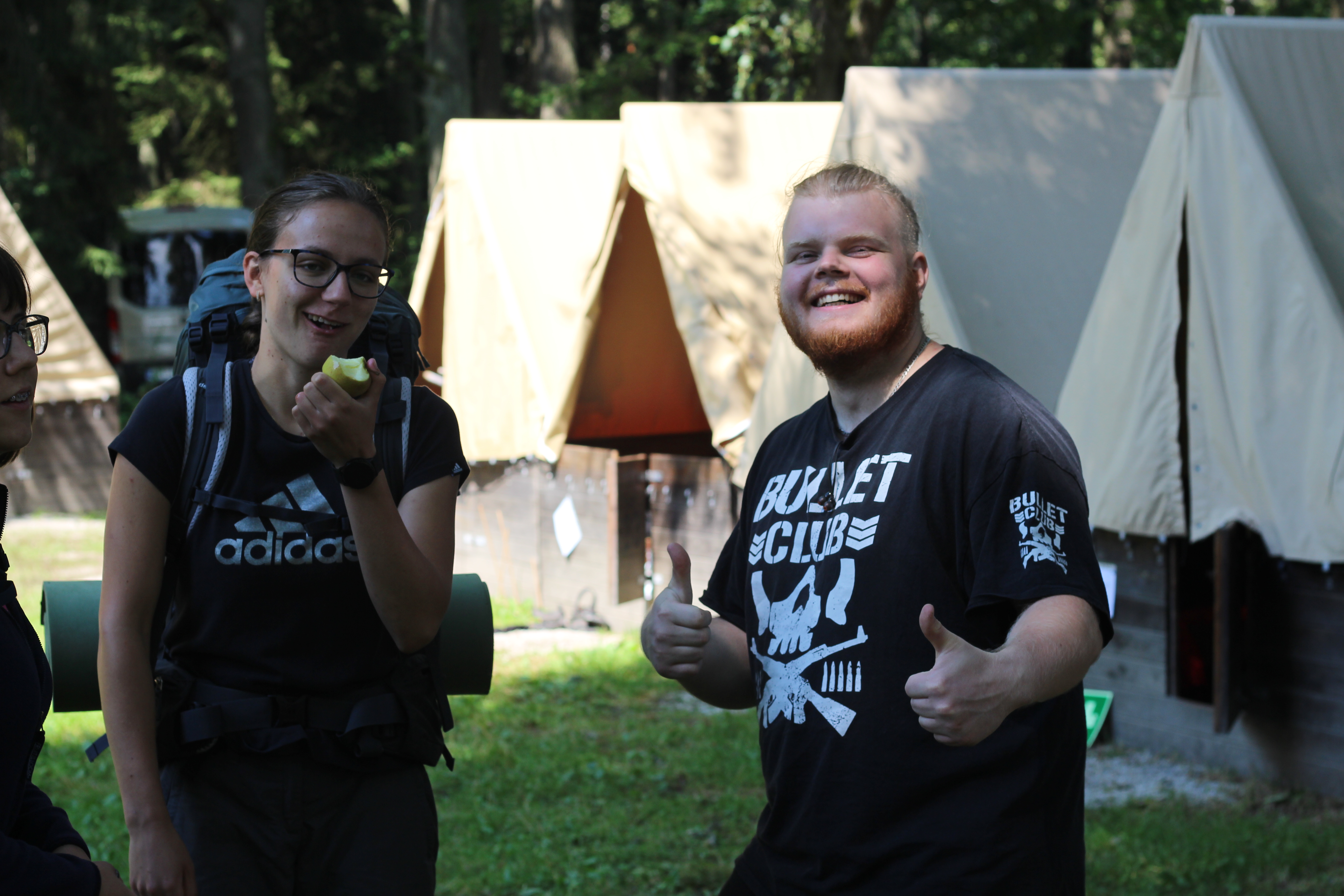 Když konečně dorazíme do tábora, začne dělení ubikací a první krátké vybalování. Tábor leží na louce uprostřed lesa, a rybník, co by kamenem dohodil, jak pěkné